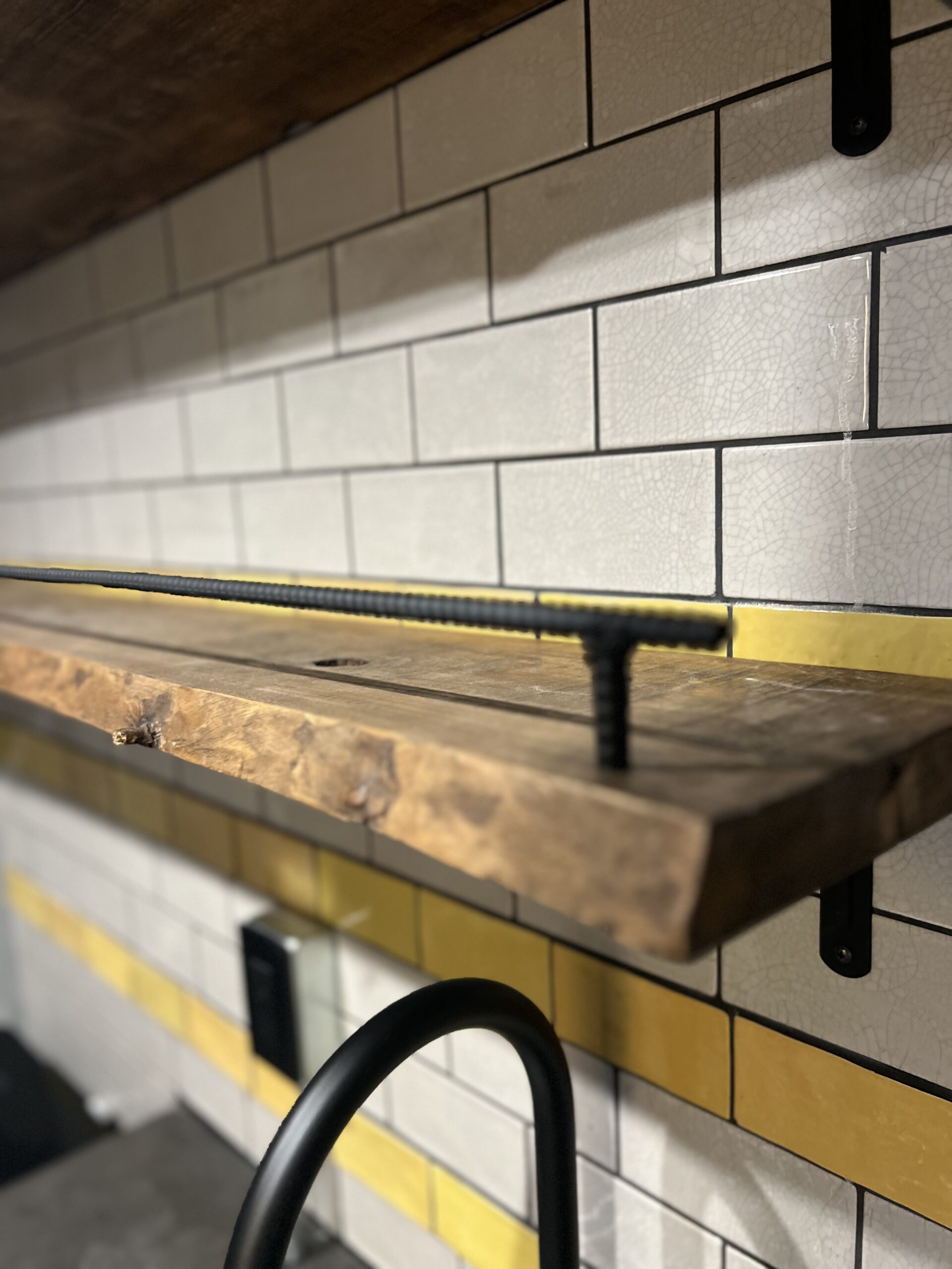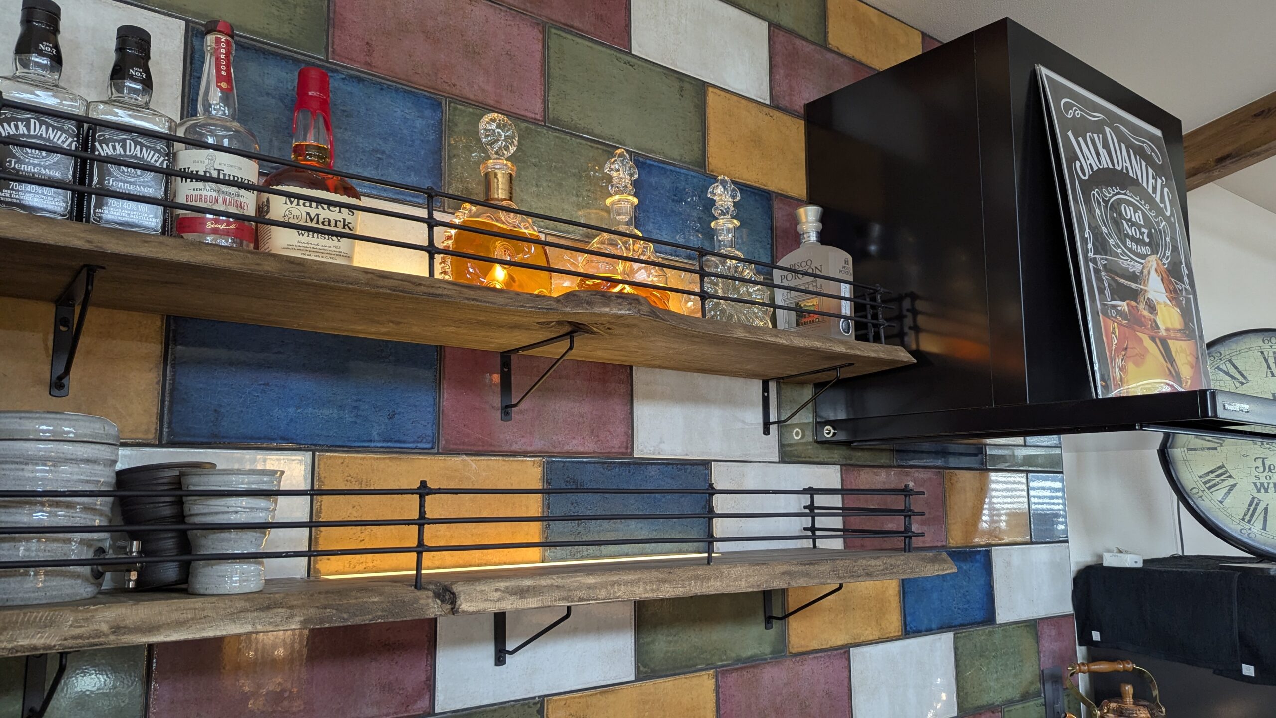タイルのツルッとした質感と、レンガのゴツゴツとした手作り感が、空間に奥行きと表情を与えます。