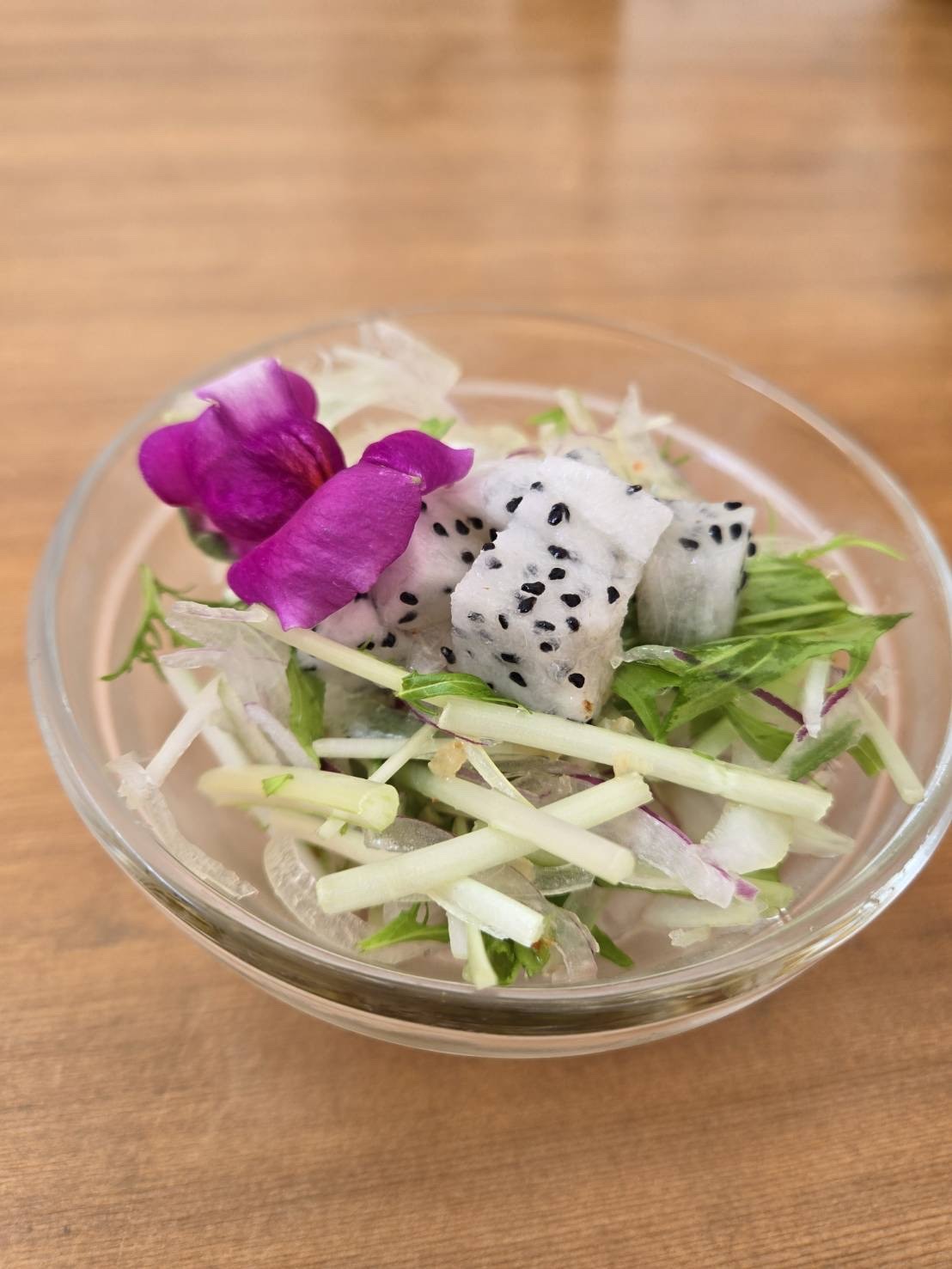 サラダはなんとドラゴンフルーツ入りです!ここでしか食べたことがありません(笑)