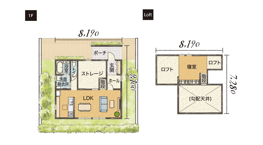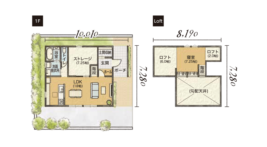 施工床面積64.58㎡(19.53坪)延床面積59.62㎡(18.03坪)1F床面積59.62㎡